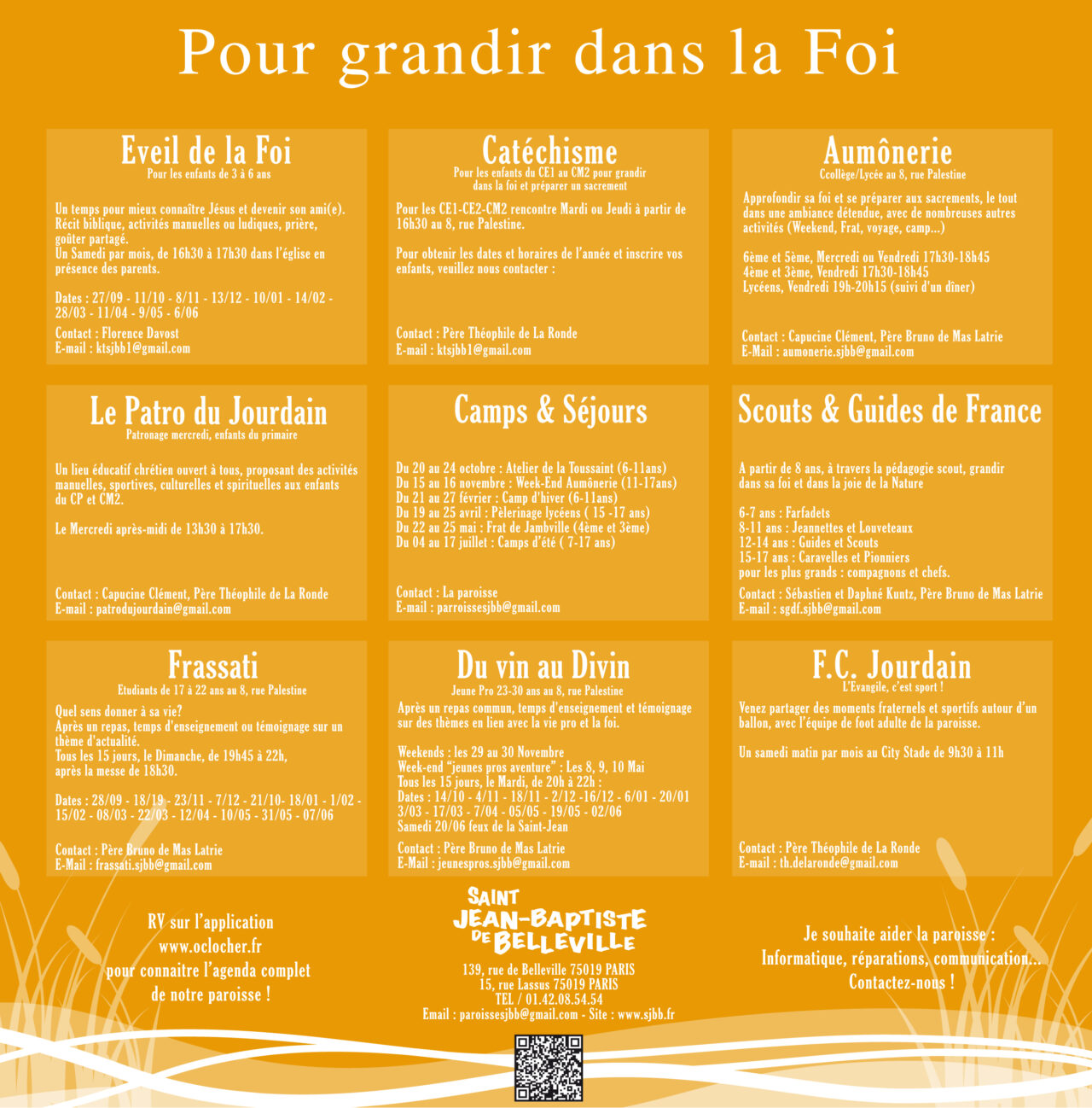 KT du CE2 au CM2 Eveil de la foi KT CE1 Aumônerie le Patro du Jourdain Frassati 18 - 22 ans Du vin au divin : 23 - 30 ans
